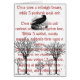Uma vintage se espalhou sobre um fundo de texto vermelho em uma fonte maravilhosa de sentimento gótico, do poema assombroso de Edgar Allan Poe "O Raven" aparece neste cartão impressionante junto com árvores negras. Uma pequena atribuição a Poe aparece no dentro inferior esquerdo. Vazio para sua própria mensagem pessoal.
