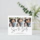 BUDGET Modern Manuscrito Salve a data Cartão com fotos múltiplo em preto e branco em uma fonte elegante e que evoca um toque romântico manuscrito. Projetado para usar três de suas fotos favoritas para personalização adicional. Adicione facilmente seus nomes e datas para um design verdadeiramente personalizado. **O nosso documento sobre o ORÇAMENTO é mais pequeno e delicado, mas ainda é bonito!** Se precisar de assistência ou de elementos correspondentes, contacte-nos em cedarandstring@gmail.com.