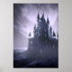 Um castelo de terror localizado no meio do oceano. Esta é uma arte gerada por IA.