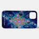 Uma imagem fractal multicolorida (rosa, verde, azul, amarela), que abre espaço sobre um fundo azul escuro. Uma interpretação de como o céu noturno pode parecer a um xamã siberiano enquanto em transe se comunicando com os espíritos. Adicione seu próprio texto.