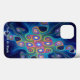 Uma imagem fractal multicolorida (rosa, verde, azul, amarela), que abre espaço sobre um fundo azul escuro. Uma interpretação de como o céu noturno pode parecer a um xamã siberiano enquanto em transe se comunicando com os espíritos. Adicione seu próprio texto.