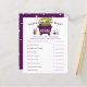 Cartão de chá de fraldas do tema das bruxas bonitas com ilustração do caldeirão de bruxas roxas fumando fumaça verde com velas e poções. Os textos são editáveis. Um jogo perfeito para jogar durante o chá. Enumera o essencial do bebê e aos hóspedes para adivinhar o preço. Quem quer que adivinhe o preço mais próximo ganha!
