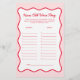 Procurando ideias de jogos de chá de fraldas? Tente nossa "Cherry On Top Chá de fraldas Adivinha O Jogo Da Idade!" Perfeito para jogos de chá de fraldas únicos, ele ajustado a cereja no tema do chá de fraldas superior. Celebre a sua pequena com o sentimento "ela é a cereja no topo", ideal para ideias de chá de fraldas namorados ou tema de chá de fraldas de fevereiro. Quer você esteja planejando um chá de fraldas arco ou um tema de chá de fraldas de morango, este jogo é uma maneira divertida de adicionar charme à sua pequena cereja no evento sobre o tema do chá de fraldas.