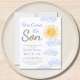 Convide a família e amigos para o seu chá de fraldas temático com este convite para chás de fraldas dos rapazes. Ele apresenta o texto "Aqui Vem o Filho" em tipografia azul na moda com uma cor d'água amarela e nuvens. O dorso é decorado com um padrão de sol sorridente. Facilmente personalizável. Original Watercolor © Michele Davies.