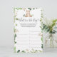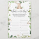Adivinhamento do chá de fraldas do tema do urso que está no cartão de jogo apresenta uma ilustração de animais de cerco com aquarela e verde-aquarela eucalipto garland e uma elegante fonte de estilo manuscrito.