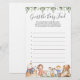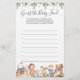 Nursery rima o chá de fraldas de adivinhação do bebê comida apresenta uma ilustração de música de berçário de aquarelas e verde-aquarela eucalyptus garland e uma elegante fonte de estilo manuscrito.