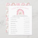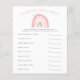 O cartão de chá de fraldas da menina do Boho arco-íris apresenta ilustrações do arco-íris cor-de-rosa pastel com estrelas. Os textos são editáveis. Um jogo perfeito para jogar durante o chá. Enumera o essencial do bebê e aos hóspedes para adivinhar o preço. Quem quer que adivinhe o preço mais próximo ganha!