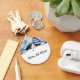 Design de arte original de um gato de smoking que persegue uma mosca azul da designer/ilustradora Carolyn McFann do Two Purring Cats Studio.