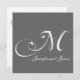 Convites feitos sob encomenda do casamento com monograma M e Names.com e WhiteWhimsicalWeddings.blogspot.com. Personalize com seus nomes e cores do casamento. Adicione toda sua informação do casamento na parte de trás do cartão usando alertas fáceis de usar do menu de Zazzle. Projete por Elke Clarke ©2011.