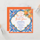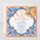 Ela encontrou seu chá de panela de convite laranja azul de de apresentação principal, modelo de download instantâneo, azulejo mediterrânico espanhol Majjolica azul, um monte de laranjas com um roteiro casual moderno, bom para as funções de verão ao ar livre.
