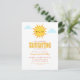 Celebre o aniversário do seu raio de sol com este cartão postal de convite de festas giro. Ele apresenta uma ilustração de um sol e nuvens sobre todos os detalhes sobre sua festa. A parte traseira do cartão postal pode ser usada para mais detalhes sobre o partido ou para uma mensagem pessoal curta.