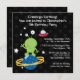 Esta festa de aniversário dos meninos 5.25x5.25 convida tem um tema bonito do outerspace. Há uma alienígena verde que está em uma ondulação do planeta. Sua nave espacial e algumas estrelas estão no fundo. Você pode facilmente personalizar sua informação do partido na parte superior e no direito. Design de Zenware do © de Copyright