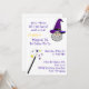 Diversão de convite de aniversário para crianças, com um tema mágico. Os assistentes de desenho animado se deparam com a decoração do canto superior direito e uma varinha mágica está no canto inferior esquerdo do convite. O texto amarelo roxo e ouro está pronto para personalizar o dia especial do seu filho. Excelente para raparigas ou rapazes e para qualquer grupo etário.