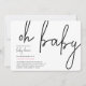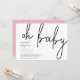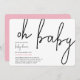 Incorpore um conjunto de convidados com este querido delicioso e especialmente um convite para chás de fraldas atraente. Este convite moderno, mas mínimo, apresenta "Oh Baby" em um grande roteiro preto com os detalhes do chá de fraldas por baixo e o fundo é rosa sólido.