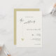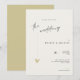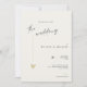 Este convite de casamento minimalista e elegante é perfeito para um casamento moderno. O design apresenta uma fonte manuscrita e um design minimalista moderno com um coração dourado. Você pode alterar os nomes, local e data do casamento e outros detalhes, clique em «Personalizar».