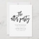Se você ama clássico, este convite simples e acolhedor é certo para você. O convite apresenta um design elegante, de fundo branco, com detalhes delicados do partido, belamente escritos em um texto negro exuberando um ar de sofisticação. Bem-vindos convidados para a sua festa após a festa em estilo. A cor e o texto em segundo plano são editáveis.