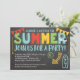 Letras de cor clara em um fundo falso-chalkboard fazem com que este convite de festas de olho pegue e se divirta! Personalize com os detalhes de sua parte usando o formulário modelo. O texto adicional pode ser adicionado à parte traseira, se necessário, usando o recurso Personalizar.