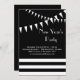 Esta é um convite de festas elegante, preto e branco da véspera de Ano Novo com estamenha e listras.