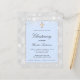 Imagem metálica prateada escura e fundo de cor azul claro decorado com pó cinza-prateado sujo. Personalize e adicione um nome e os detalhes. Letras pretas coloridas.
