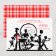 Reúna familiares e amigos para se divertir no verão e um churrasco com este convite nostálgico. Ele apresenta membros da família em silhueta, exceto pelo avental xadrez vermelho e branco usado por "o cozinheiro". O xadrez combina com a parte de trás do convite. Também é um convite perfeito para 4 de julho! O cartão é fácil de personalizar com sua redação, fonte, cor da fonte e escolha de seis tipos de papel.