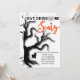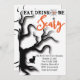 O convite do Dia das Bruxas come, bebida e seja o adulto assustador convida que é preto e branco com o assustador na laranja. Texto customizável! Espaço extra para o texto adicional na parte traseira.