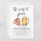 O convite O Par Perfeito pode ser personalizado para um jantar de ensaio, festa de noivado ou chá de casal! A pizza e a cerveja em aquarela combinam perfeitamente com as fontes de texto modernas.
