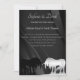 Uma bela design de convite para casamento de fotos quadradas. Para casais que querem um simples e elegante design de convite para casamento. O design apresenta os nomes da noiva e do noivo em uma fonte elegante de script. Mostrada em preto e prata com um fundo preto elegante. Personalizável com sua fotografia de noivado e detalhes de casamento. Projetado por Robin D. Cox.