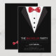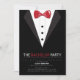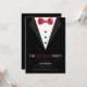 Convide-os para a despedida de solteiro com este convite elegante e sofisticado com um smoking preto e gravata borboleta vermelha.<a href='http://www.freepik.com/free-vector/bachelor-party-vector_710239.htm'>Projetado por Freepik</a><br/>O cartão é fácil de personalizar com sua redação, fonte, cor da fonte, opções de forma de papel e escolha de seis tipos de papel.<br/><br/>Não é exatamente o que você está procurando? Todos os nossos produtos podem ser personalizados para atender às suas necessidades sem nenhum custo adicional.<br/><br/>Basta entrar em contato conosco em askcottonlamb@gmail.com<br/><br/>Produtos coordenados disponíveis: