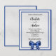 Um convite moderno, elegante e de casamento. Fundo metálico de aspecto fino prateado decorado com armações azuis e arcos reais. Personalize e adicione seus nomes e detalhes do casamento. Letras pretas coloridas.