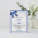 Um convite moderno, elegante e de casamento. Fundo metálico de aspecto fino prateado decorado com armações azuis e arcos reais. Personalize e adicione seus nomes e detalhes do casamento. Letras pretas coloridas.