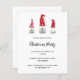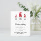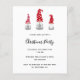 Fundo branco, decorado com 3 gnomos do estilo escandinavo em vermelho, branco e cinza. Um convite de festas perfeito para uma festa de Natal com amigos, familiares ou colegas de trabalho. Personalize e adicione os detalhes da sua festa. Letras negras.