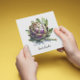 Compartilhe um pouco de elegância serena com isso O Coração do Jardim: Cartão Artichoke. Este cartão delicioso apresenta uma bela alcachofra aquosa, perfeita para enviar uma nota atenciosa ou uma bela mensagem a um ente querido. Você pode personalizá-lo com uma frase criativa como Do Meu Jardim ao Seu, um nome simples como o Cartão da Jane, ou uma mensagem pessoal como Desejar a sua elegância.