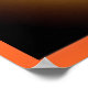 Um coração partido abstrato num fundo amarelo/laranja com uma cor preta à volta com uma bainha laranja à volta. Esta é uma arte gerada por IA.