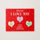 Esta será minha quebra-cabeça de noiva é uma maneira excelente de pedir a ela que a casado. O design apresenta um fundo vermelho com corações cor-de-rosa. Você pode personalizar o nome dela com as palavras "EU AMO VOCÊ" que aparecem logo abaixo. Três corações aparecem onde você pode deixar sua mensagem especial para ela. Além disso, você pode assinar o quebra-cabeça com seu nome. Esta é uma maneira divertida de pedir a ela que seja sua noiva. Copyright Kathy Henis
