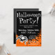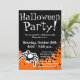 O costume dos convites de festas | do Dia das Bruxas convida com design assustador da aranha. Texto do anúncio de Personalizable e cor do fundo. Preto e laranja.