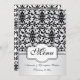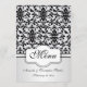 Cor damasco preto e branco com redemoinhos e pássaros que Wedding o menu. Você pode ajustar o texto de acordo com suas exigências.