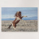O garanhão banda, Splaash, ganha uma pose quando confrontado com um grupo de garanhões solteiros chegando muito perto de suas éguas.