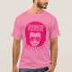 O t-shirt cor-de-rosa dos homens que caracteriza o design do homem com afro e óculos de sol. As palavras no "DISCO lido afro ACONTECEM" produto de Arny L. Design.
