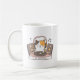 Uma caneca com uma ilustração bonito do doodle de um gato que esteja vestindo fones de ouvido em torno de seus mordentes que riscam em um mixtable com auto-falante gigantes atrás apenas como um disco-jóquei profissional. O texto lê o "DJ risca" que é tomada cómico da chalaça na técnica do risco do DJ.