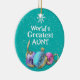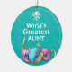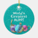 Enfeites de natal de fundo de neve para tia com belos Enfeites de natal azuis, cor-de-rosa e lavandas. Personalize com qualquer mensagem. encantador.