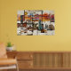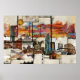Um impressão digital multimídia de marcos e arquiteturas icônicos do Texas combinados em uma composição de montagem de cor de água.
