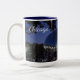 Uma vista da skyline e do porto de Chicago do cais do marinho de Chicago. Esta caneca da foto da skyline de Chicago é um grande presente para qualquer um que ama a cidade ventosa. Esta arte fotográfica é disparada do Lago Michigan e acentua o espírito da cidade.
