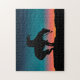 O fim da silhueta de trilha com céu noturno e estrelas quebra-cabeça