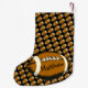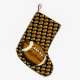 Esta meia do Natal do excelente caracteriza os futebóis marrons e brancos que voam através do ar. Personalize facilmente o texto para um fã de esportes especial ou remova-o inteiramente.