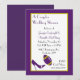 O divertimento acopla o convite do chá de casamento feito em roxo, em goldtone, e o branco. Os gráficos de um roxo e de um ouro coloriram o quadro, em torno de uma área de texto branca, com um salto de estilete roxo que retrocede um roxo, um ouro, e um futebol branco. O texto preto e roxo é inteiramente customizável personalizar para seu chá de casamento. Excelente para o casal do fan de futebol.