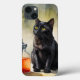 Um gato preto curioso com olhos de ouro impressionantes senta-se ao lado de uma misteriosa garrafa de vidro cheia com um líquido de abas âmbar. A pintura aquosa captura a natureza inquisitiva do felino e a atmosfera intrigante da cena. Perfeito para amantes de gatos e para aqueles que apreciam um pouco de mistério em sua arte.