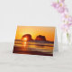 Um cartão vazio que mostra a praia de Rockaway, o Oregon e um por do sol espectacular das rochas do gêmeo.