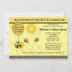 Caracteriza uma ABELHA das mamães e dois zangões doces do bebê (um um menino com asas azuis e o outro uma menina com suas asas do rosa e flor do cabelo) em uma fuga coração-dada forma da abelha. Caracteriza máscaras do AMARELO, do favo de mel e do tema preto e branco da cor das bolinhas. Este convite é perfeito para o género revela o tema de "o que ele abelha?" Igualmente trabalharia maravilhosamente para um tema do gêmeo/chá de fraldas dos gêmeos.
