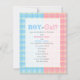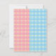 Um género revela o convite de festas que caracterizam um design cor-de-rosa da xadrez no direito, e o design azul da xadrez na esquerda.