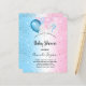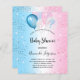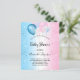 Para um gênero revela chá de fraldas, um fundo de gradiente azul e rosa. Decorados com balões azuis, cor-de-rosa e brancos. Personalize e adicione o nome da mãe a ser e os detalhes da festa. O nome e o texto: Chá de fraldas são escritos com um script de estilo manuscrito